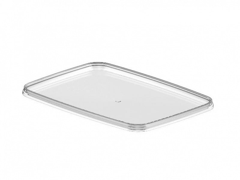 PP deksels met Tamper Evident (TE) sluiting, geschikt voor rechthoekige bakken van 1200 en 1600 ml met garantiesluiting.