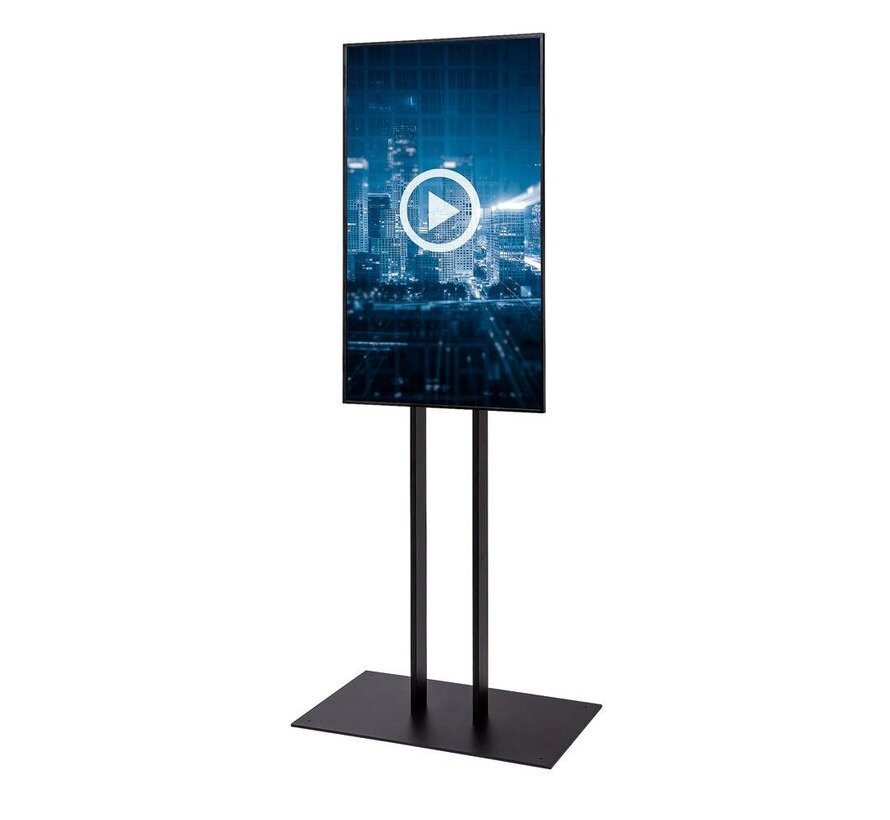 De Digitale Etalage Display van Shopdepot, een digitale bewegwijzering met hoge zichtbaarheid, ideaal voor etalages, winkels en openbare ruimtes. Deze robuuste oplossing beschikt over een stabiele stalen constructie met een gepoedercoate afwerking in RAL 9005 gitzwart. De behuizing is voorzien van een universele VESA-bevestiging, geschikt voor de gangbare beeldschermformaten van 43", 50" en 55". Hiermee kunt u diverse boodschappen en productpromoties effectief presenteren.