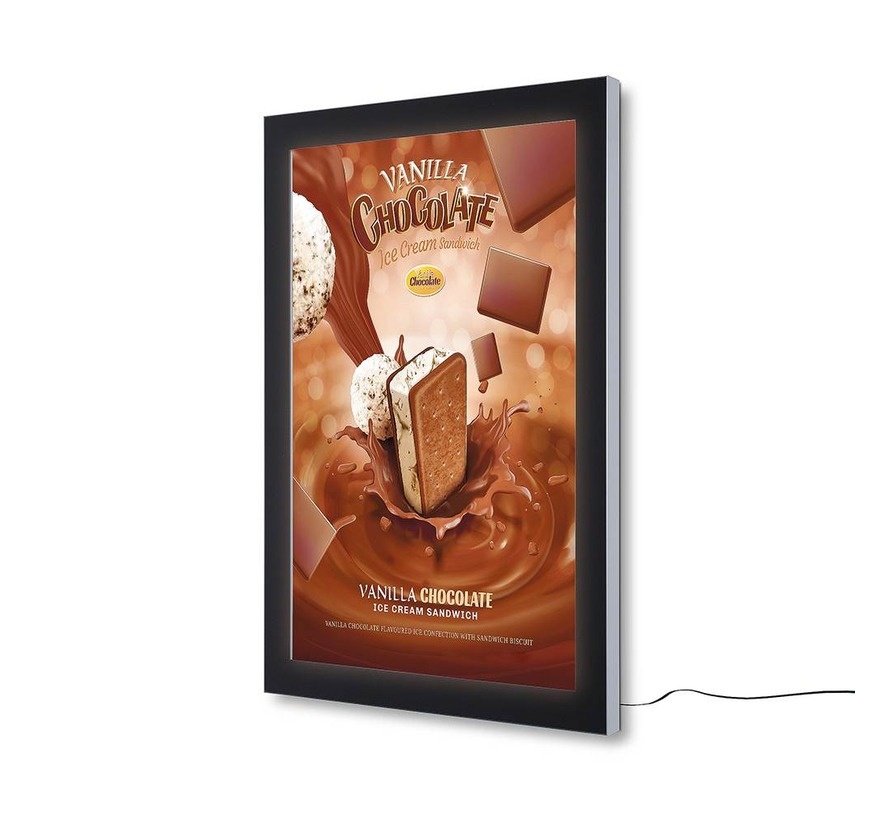 De LED Outdoor Premium Poster Case, een veilige en stevige showcase voor buitengebruik. Deze case is voorzien van een robuust frame van 8,1 cm breed met een stijlvolle zwarte keramiekprint en een externe diepte van 7 cm. Het 4 mm ESG-veiligheidsglas biedt helder zicht op de poster, terwijl een stalen achterwand en rechte hoeken zorgen voor een professionele uitstraling en optimale duurzaamheid.