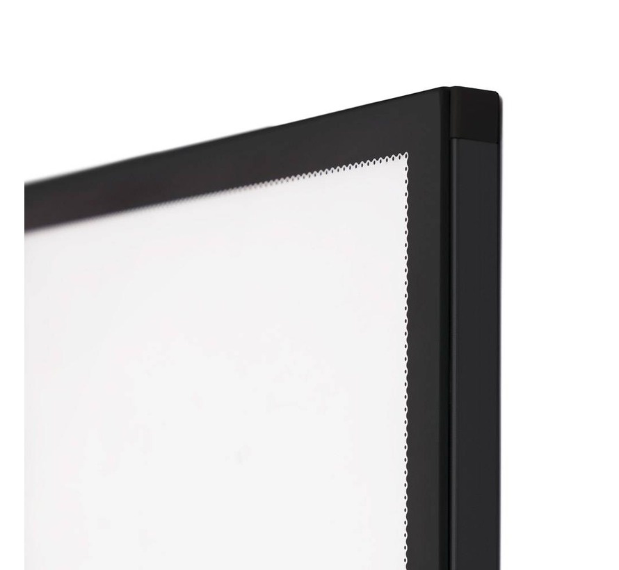 De LED Slide In Frame Slim, een stijlvolle en slanke oplossing om uw reclame en promoties te verlichten. Dit frame, verkrijgbaar in een zwarte uitvoering met een ultradun profiel van 10 mm voor A3 en A2 of 12 mm voor A1, biedt een elegante presentatie voor posters. Dankzij het geïntegreerde LED-paneel met 12V lampen en een achterwand van opaal laserglas straalt uw advertentie een heldere en homogene verlichting uit, zelfs bij weinig licht.